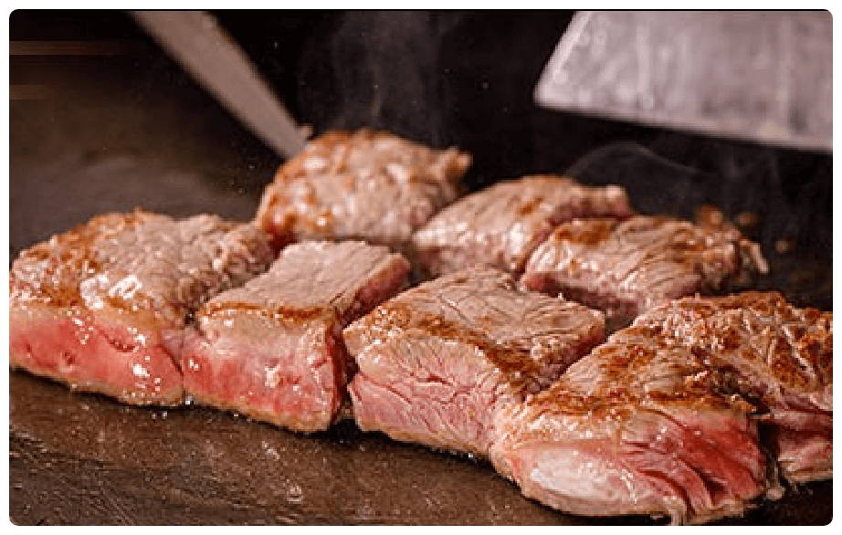 厚さ3cmの鉄板でじっくり焼き上げることで、黒毛和牛ならではの柔らかさとジューシーな旨みが存分に味わえます。